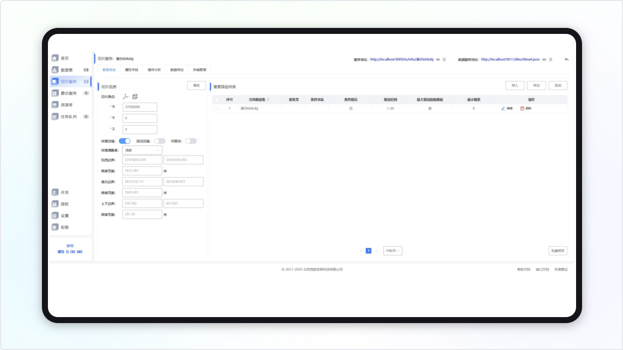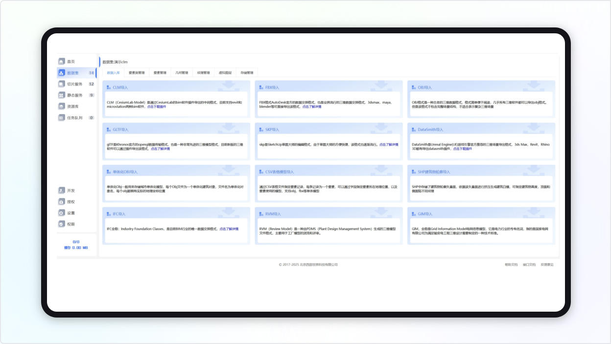 本产品是面向工程级三维数据的全流程治理平台,支持CLM/FBX/OBJ等12+格式智能导入,通过LOD优化、纹理压缩与要素筛选生成3DTiles/I3S等高性能格式,集成可视化编辑引擎实现实时切片与Cesium/Unreal双引擎验证;独创属性结构自定义体系实现业务数据与三维要素的原子级融合,专为处理大型BIM构件、城市级单体化模型及高精手工模型设计,突破复杂模型加载效率瓶颈并打通业务系统对接通道。
