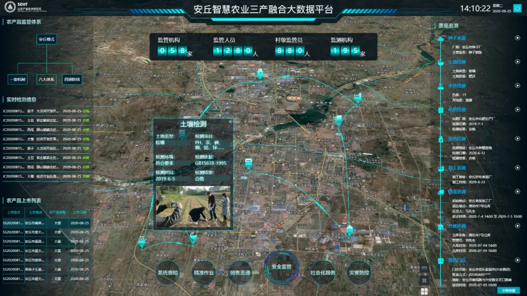 安全监管专题应用利用数字地球和区块链技术,实现农产品在种植、检验、生产和销售等各环节的详细信息追溯,做到农产品的来源可追、去向可查、责任可究,保障农产品的优良品质并为区域品牌建设提供背书。