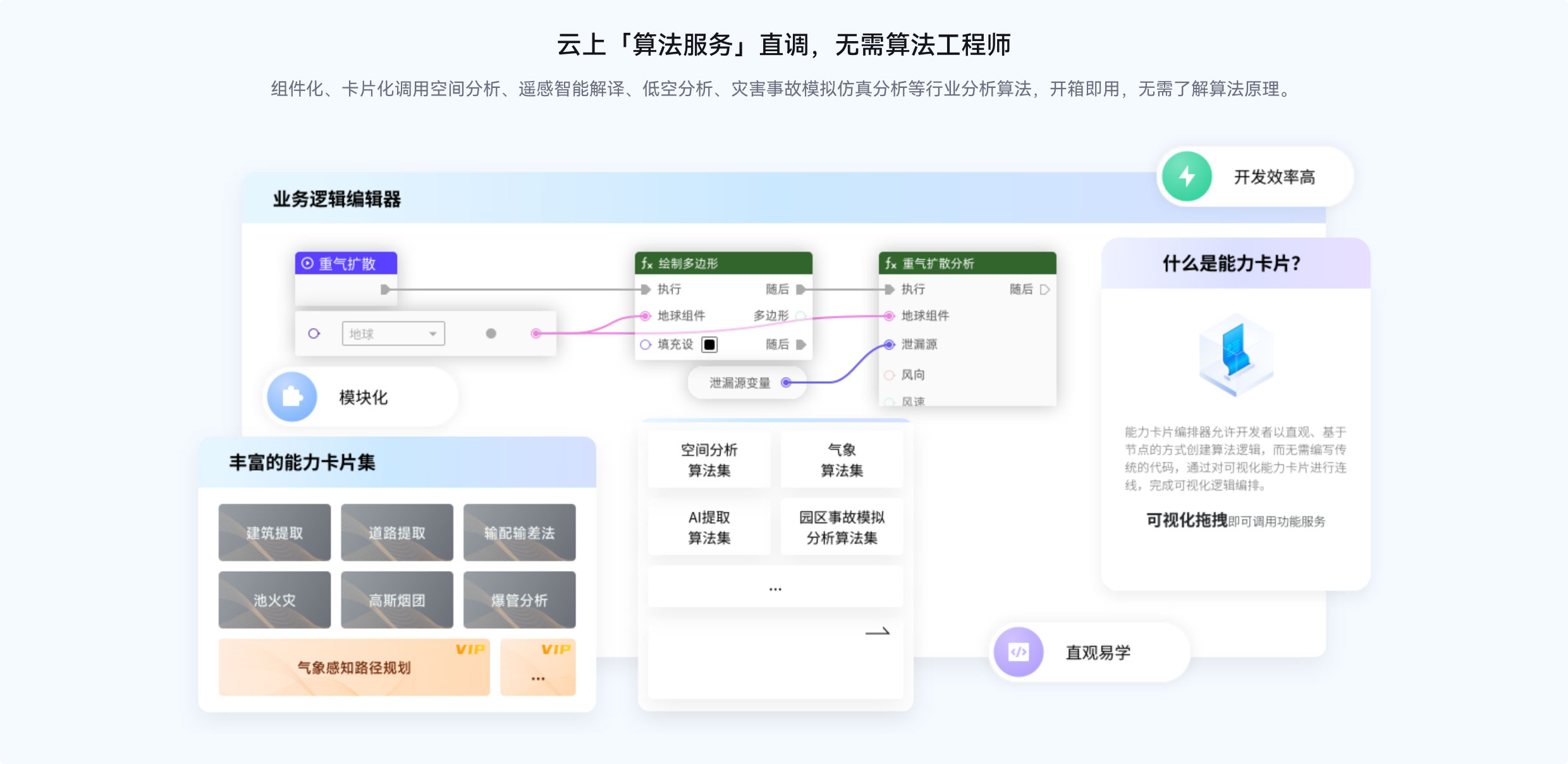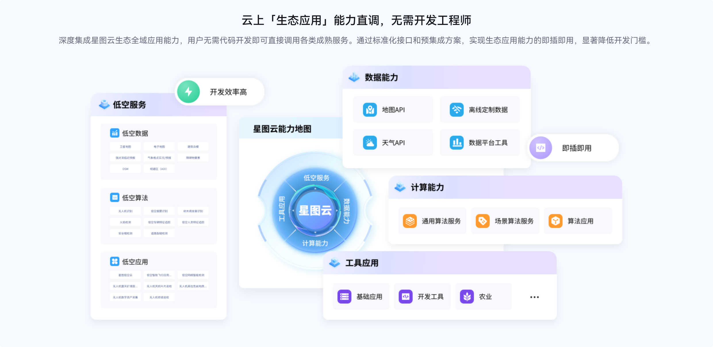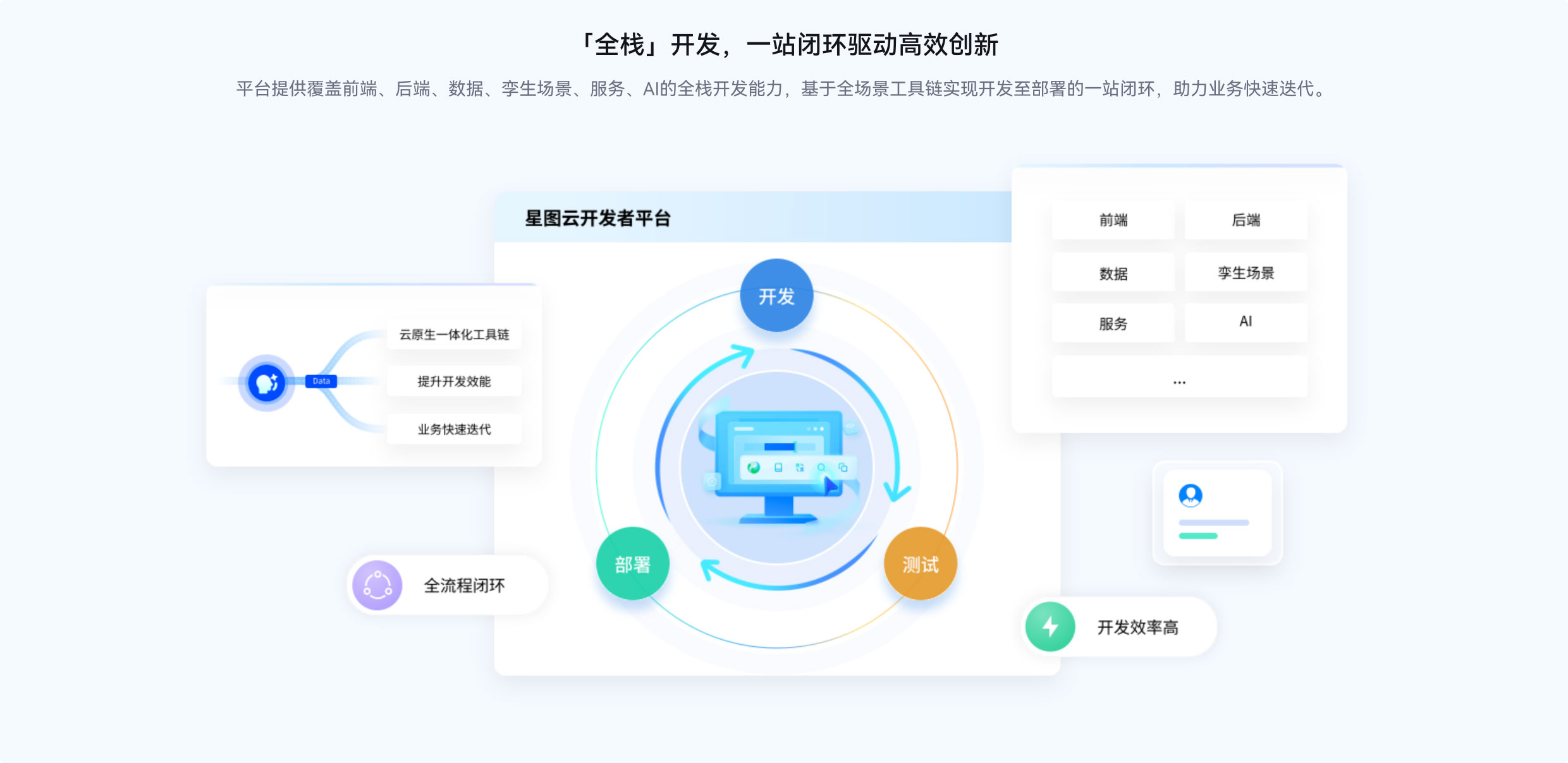 星图云开发者平台是星图云生态体系中的核心开发中枢,深度集成了星图云空天信息产业链多圈层能力及数字地球引擎、数字孪生引擎、IoT、AI等全域能力,面向开发者打造全栈可视化开发平台,提供覆盖可视化开发、数据服务开发、逻辑开发、微服务管理的前后端全场景工具链。平台融合“拖拽+配置”的“类PPT开发”及连线成图的“类流程图”开发模式,支持无缝调用星图云上的数据、算法、应用等资源,实现从数据接入、算法调用、应用协同开发到应用发布部署的云上一站闭环,全流程降低开发门槛与成本,助力企业快速构建数字化转型能力,实现降本增效。