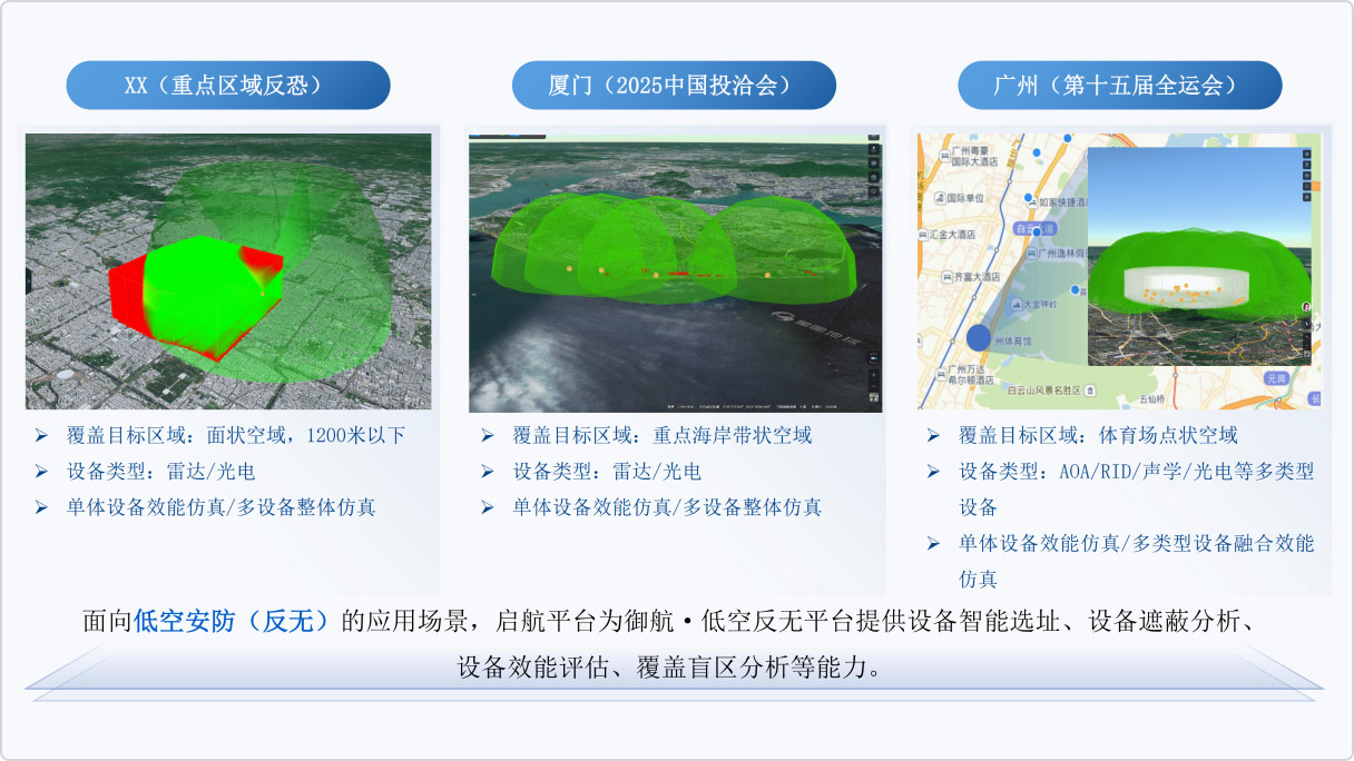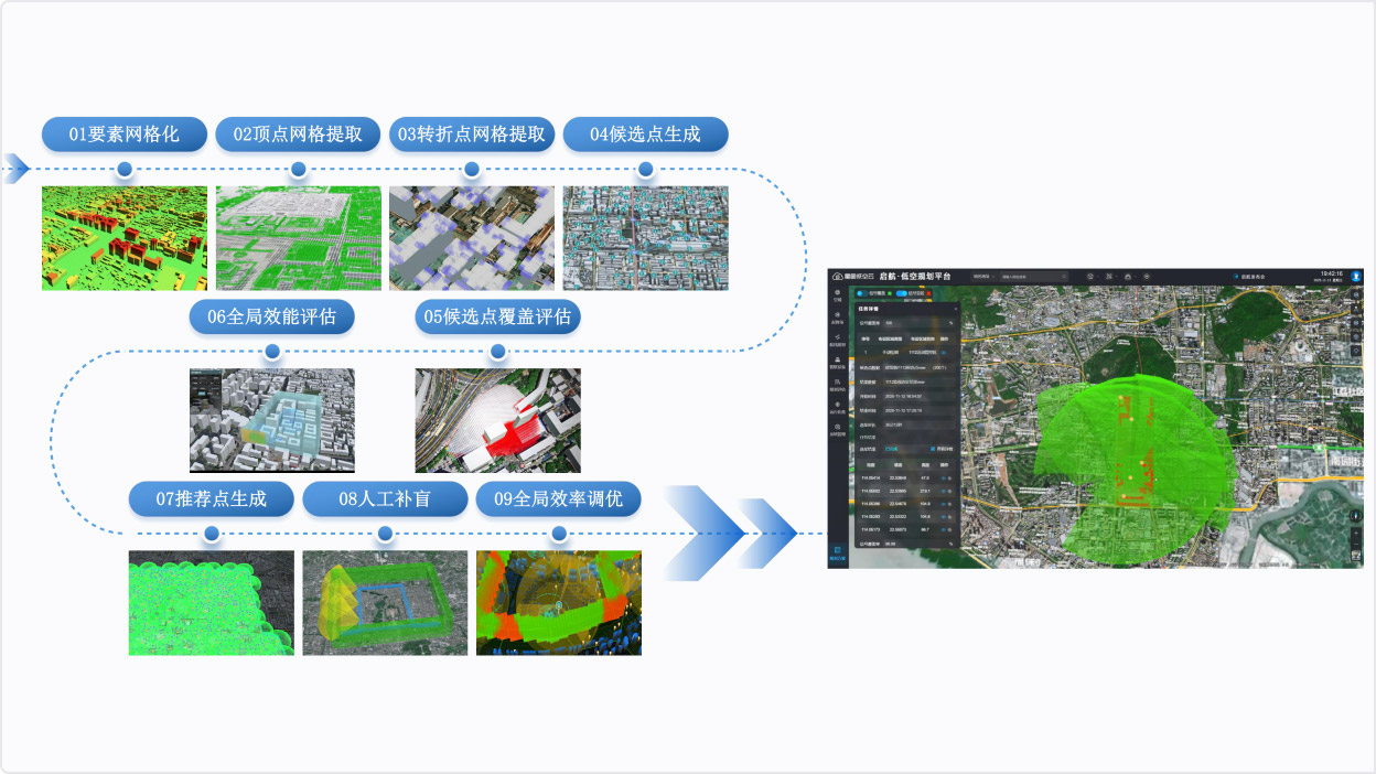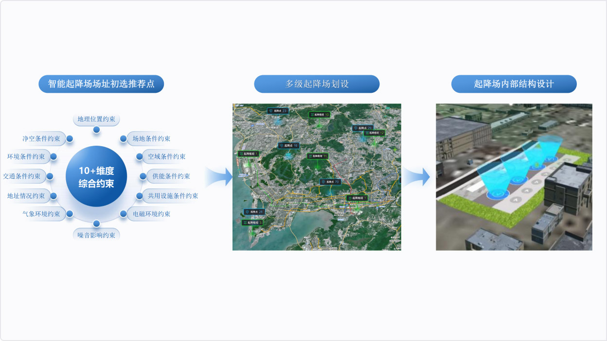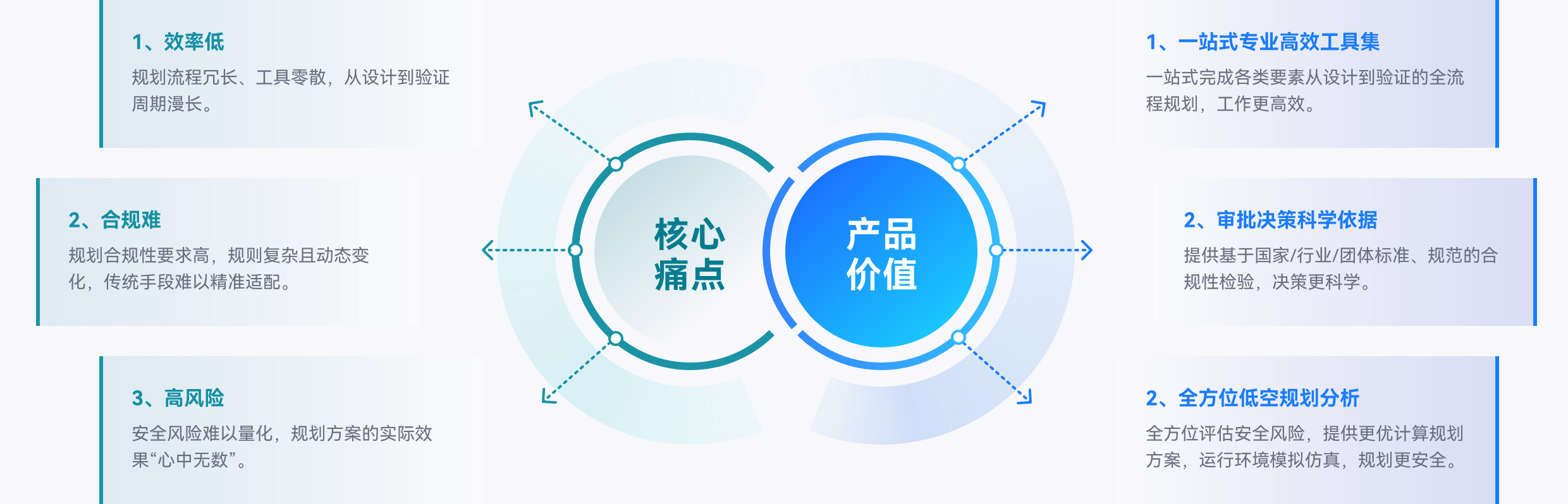 启航·低空规划平台,基于星图十圈层数据能力,依托低空中台空域网格、空域计算、数字孪生和低空仿真等核心引擎,构建一套从低空空域规划、起降场选址、航线规划、智联设施布设选址、运行仿真到线下踏勘全流程的低空综合规划体系。为低空规划单位、低空运营监管方及低空应用方提供一站式数字化低空规划工具。