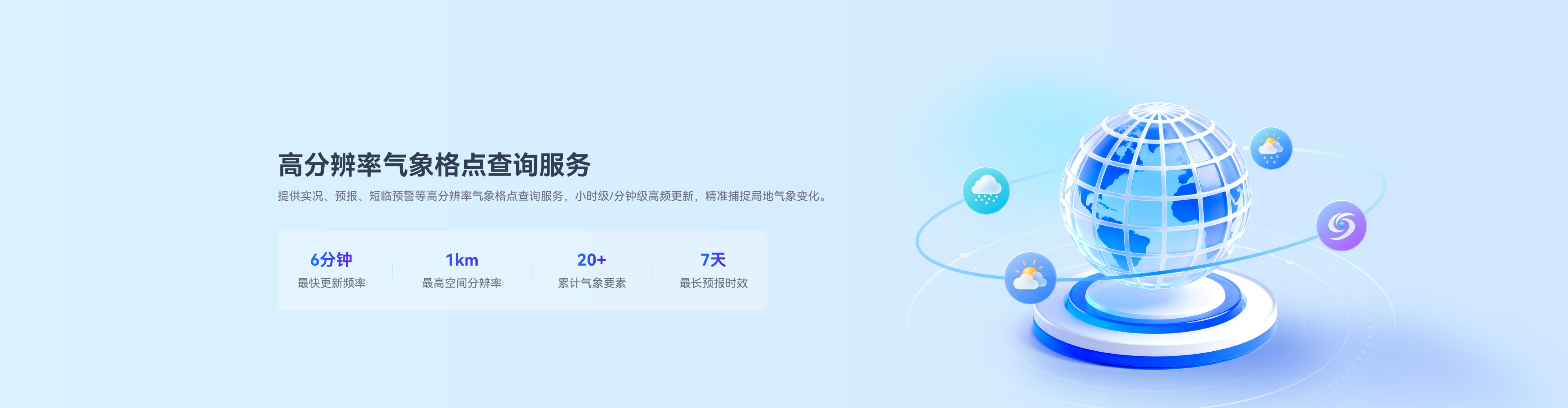覆盖国内+海外全场景实况、预报气象能力,多维度要素、高频率更新、高稳定服务,为开发者提供一站式气象数据接入方案。