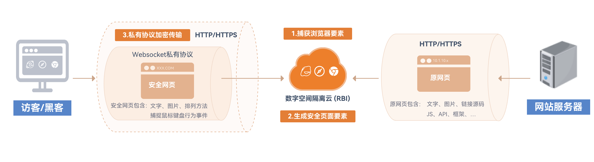 数字空间Web隔离系统将网页变成可视化镜像页面对外发布,体验和浏览不受影响; 网页源代码、api接口、第三方框架等信息对外不可见,隐藏可被利用的漏洞(含0Day); 只能通过私有协议和“安全隔离层”交互,且仅响应鼠标键盘网页命令,切断直接访问途径,黑客无法发起攻击,无需规则,从根源阻止自动化攻击、漏洞利用、暴力破解、注入等各类攻击,使安全达到更高的级别。