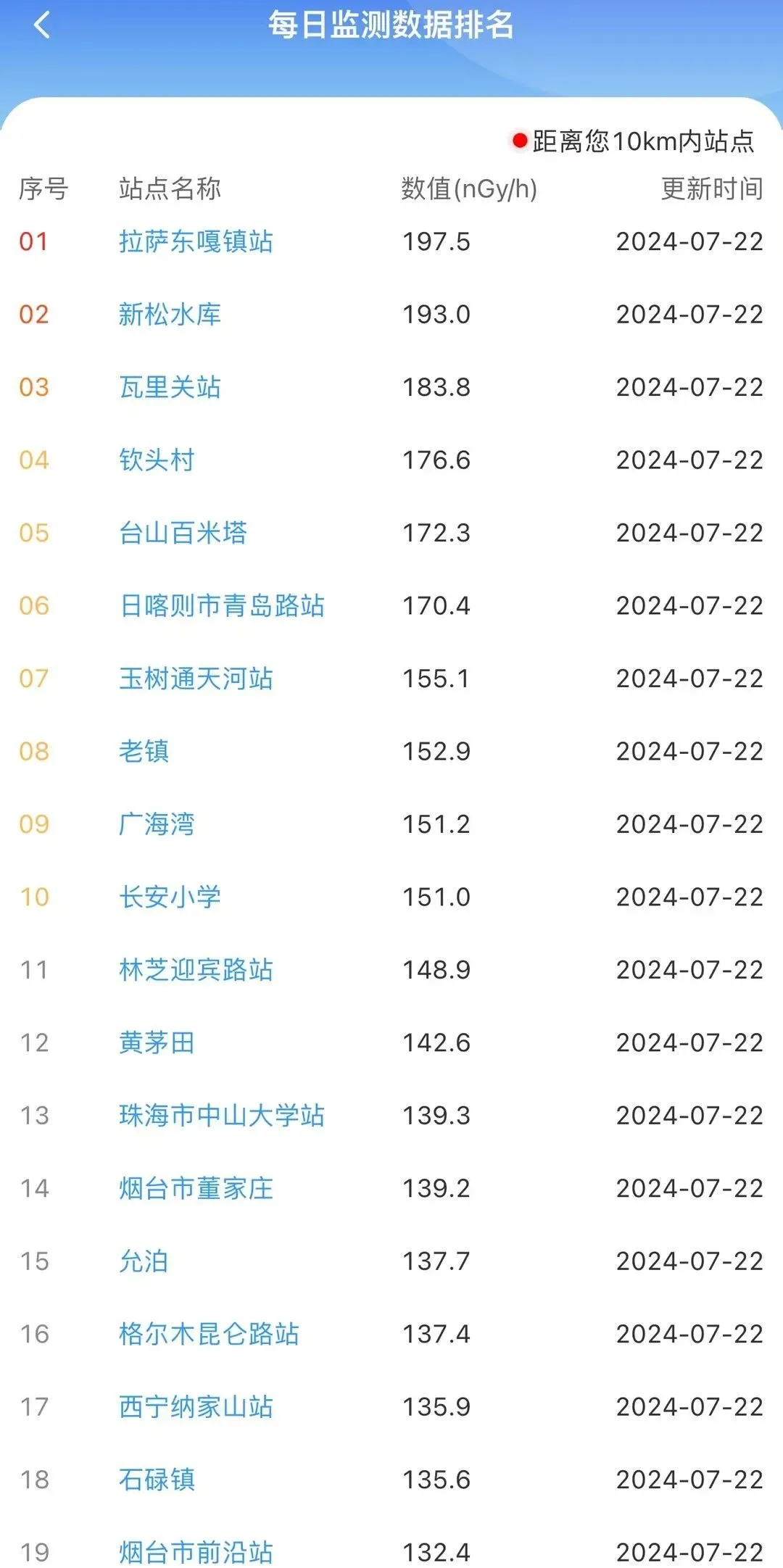 该功能集成了全国范围近400个核辐射监测站点的实时数据,全方位构建全民安全防护网。