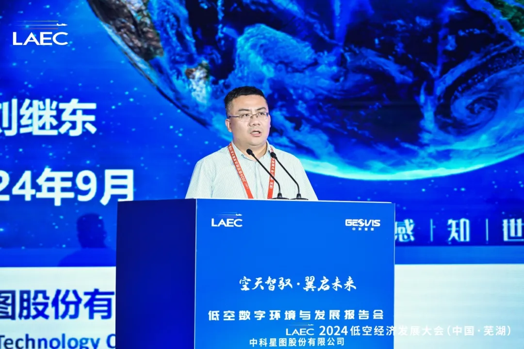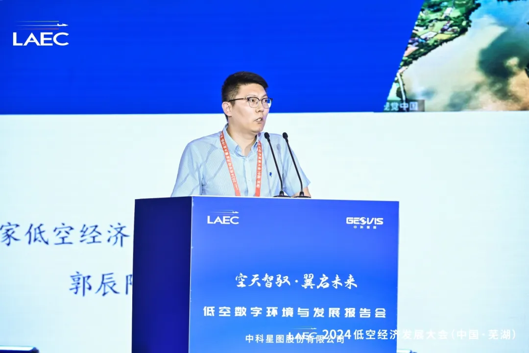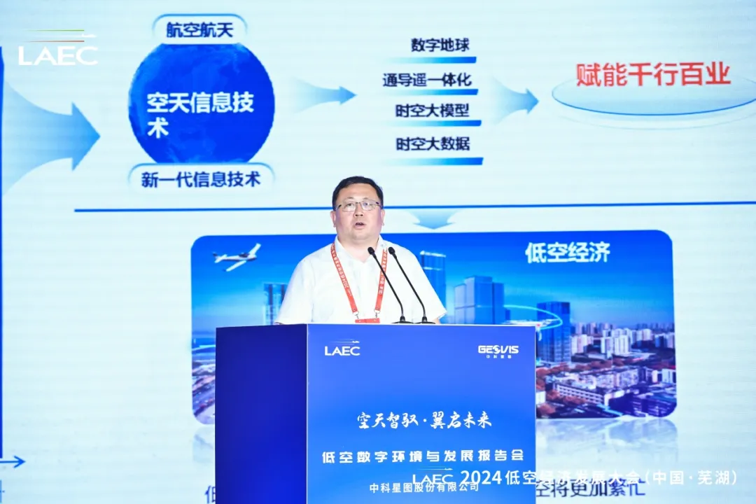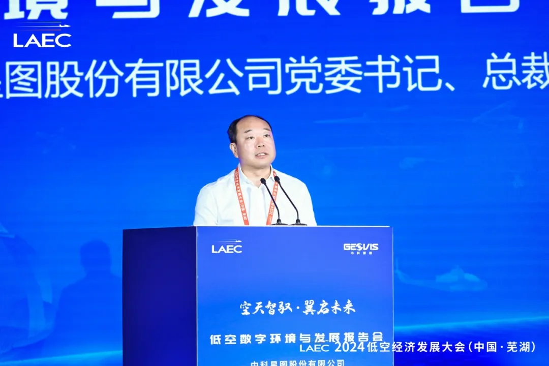 2024低空经济发展大会开幕式上,7家公司共同进行企业重大成果集中发布,中科星图党委书记、总裁邵宗有代表中科星图发布GEOVIS数智低空大脑。
