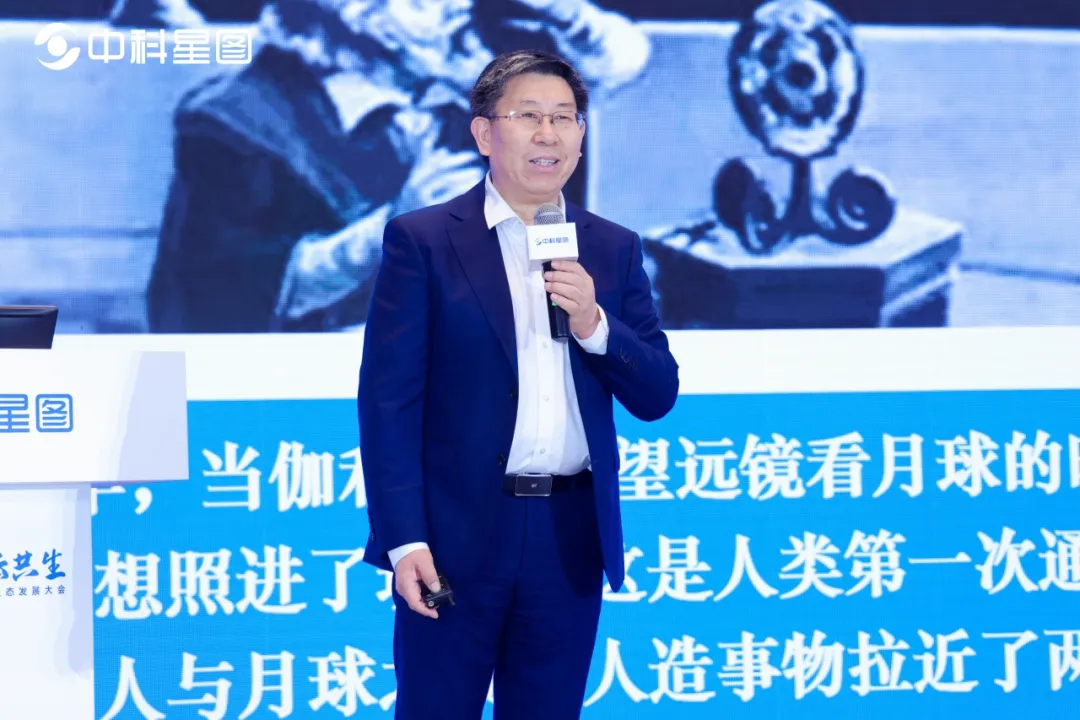 周成虎作《商业航天推动空天信息快速发展》主题分享,系统回顾了遥感发展史,高度评价了中国在推动数字地球“云上化”的关键作用。他指出,当前商业遥感卫星星座已成为发展的基本态势,商业航天促进了空天信息应用进入数智地球新时代。“大数据、大知识、大算力是基础,大模型是核心,大行业、大产业才是魅力所在。”他说道。