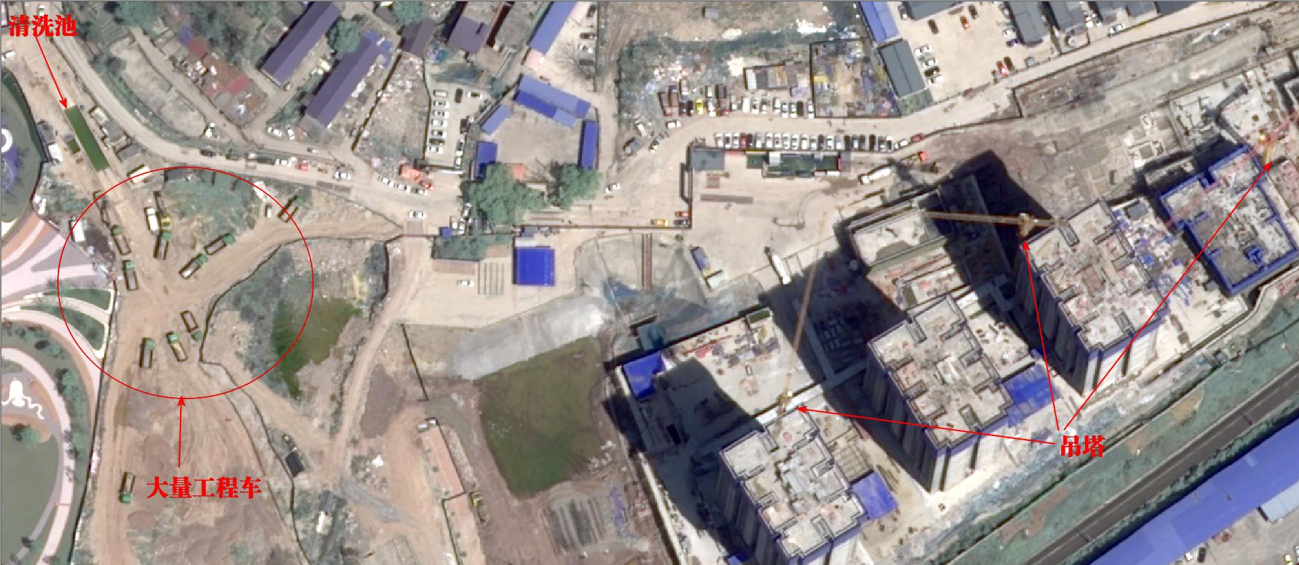 0.3米影像图可以清楚的看到吊塔工程车挖掘机水利搅拌车