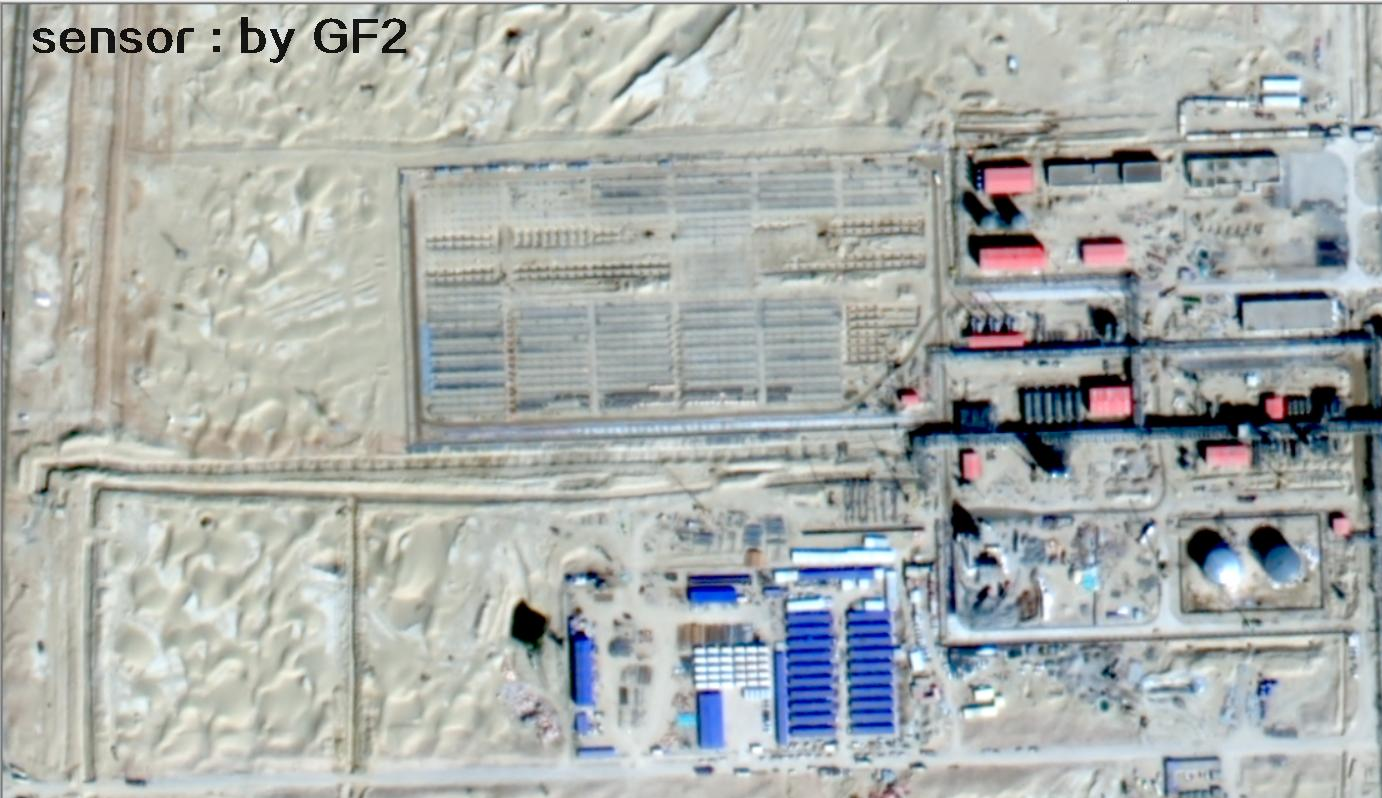 0.8米GF2卫星拍摄到的塔克拉玛干沙漠里的工厂设施图片