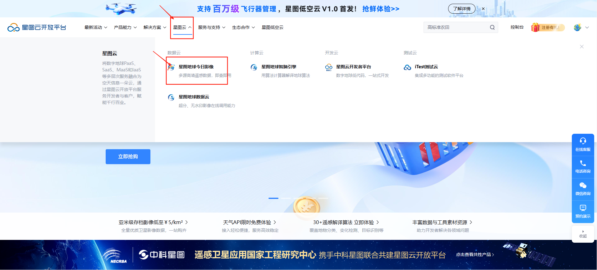 一、注册/登录星图云开放平台,选择【星图云】-【星图地球今日影像】