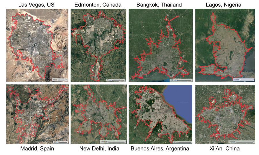 根据全球人工不可渗透区域 (GAIA) 数据绘制全球城市边界