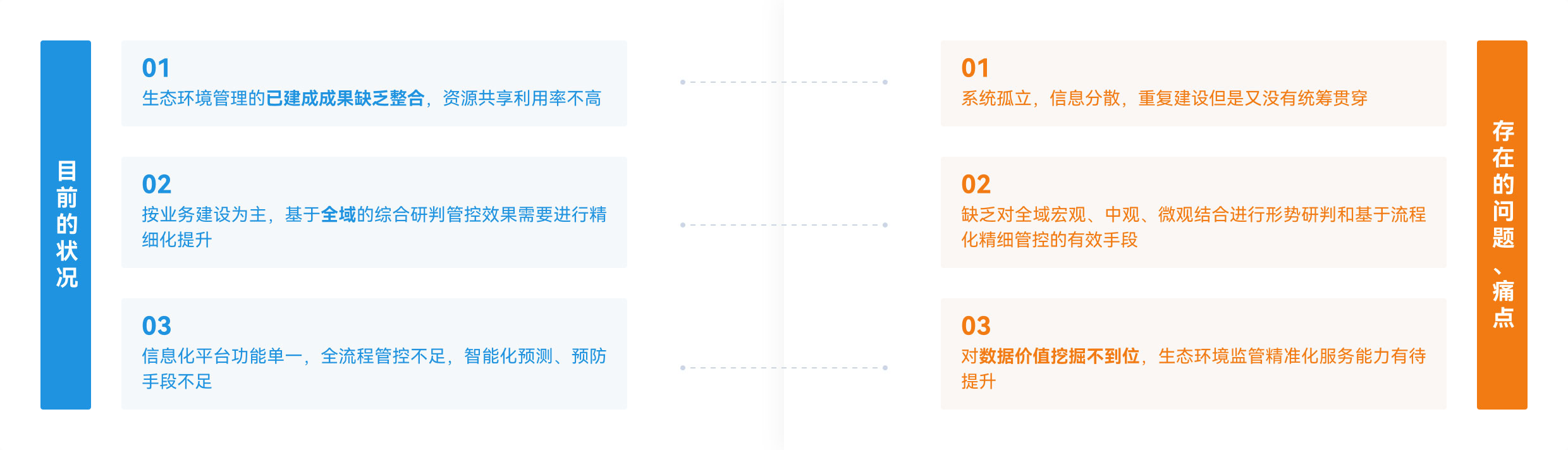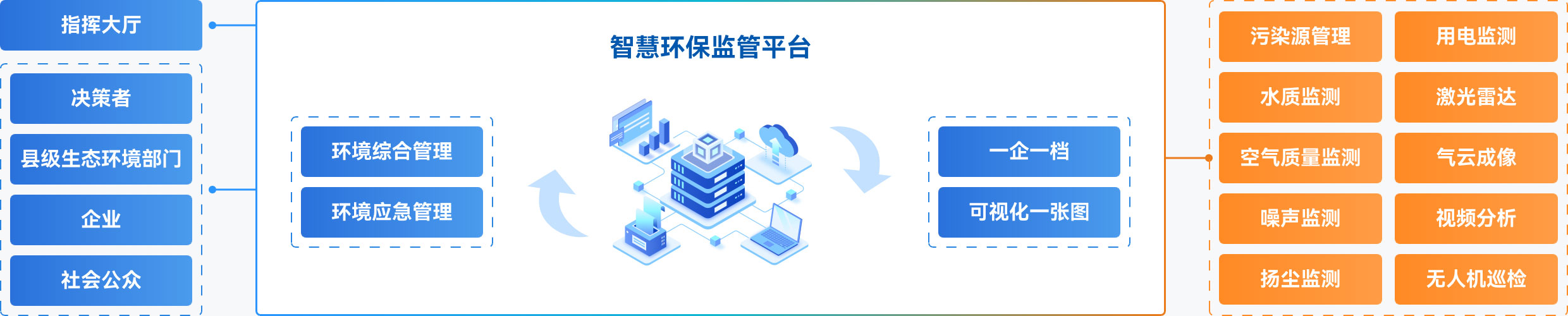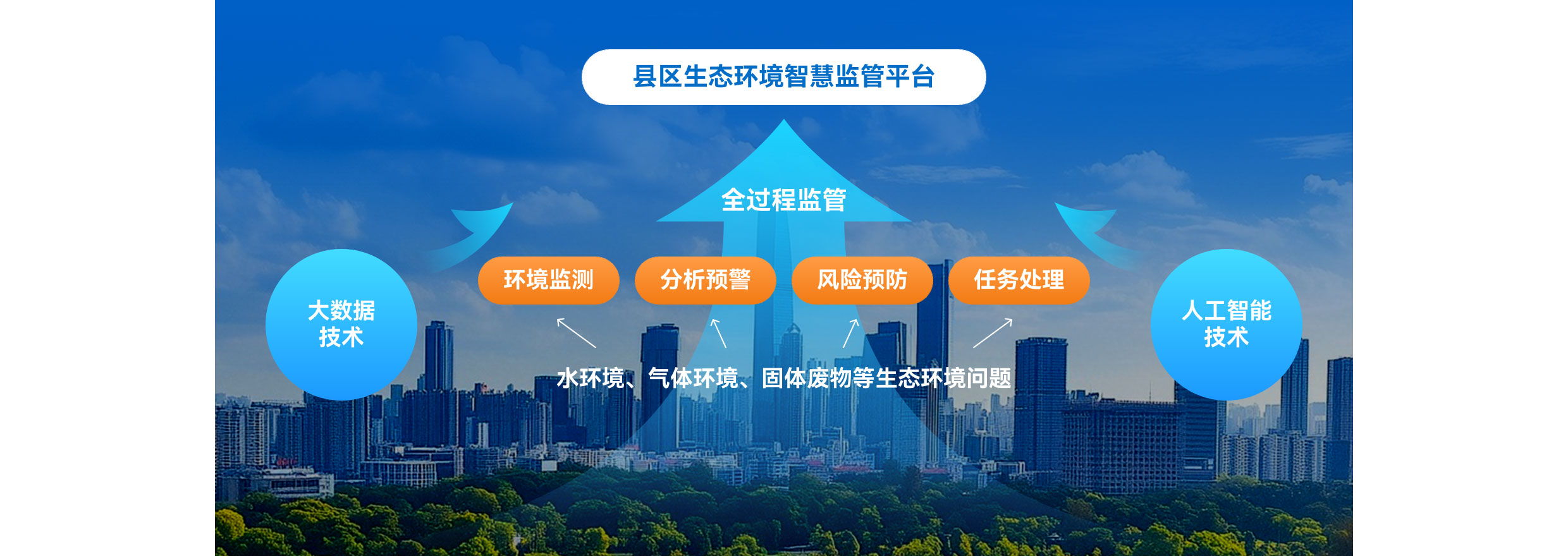 运用大数据、人工智能等技术,结合县区生态环境管理业务的具体需求,构建县区生态环境智慧监管平台,实现对环境监测、分析预警、风险预防、任务处理的全过程监管,实现生态环境问题从自动监测识别到问题解决的闭环式管理;平台围绕突出的水环境、气环境、固体废物等问题进行深度的形势和决策分析,利用科学的技术方法向县区基层环保人员提供可靠的数据依据,切实解决县区生态环境问题。