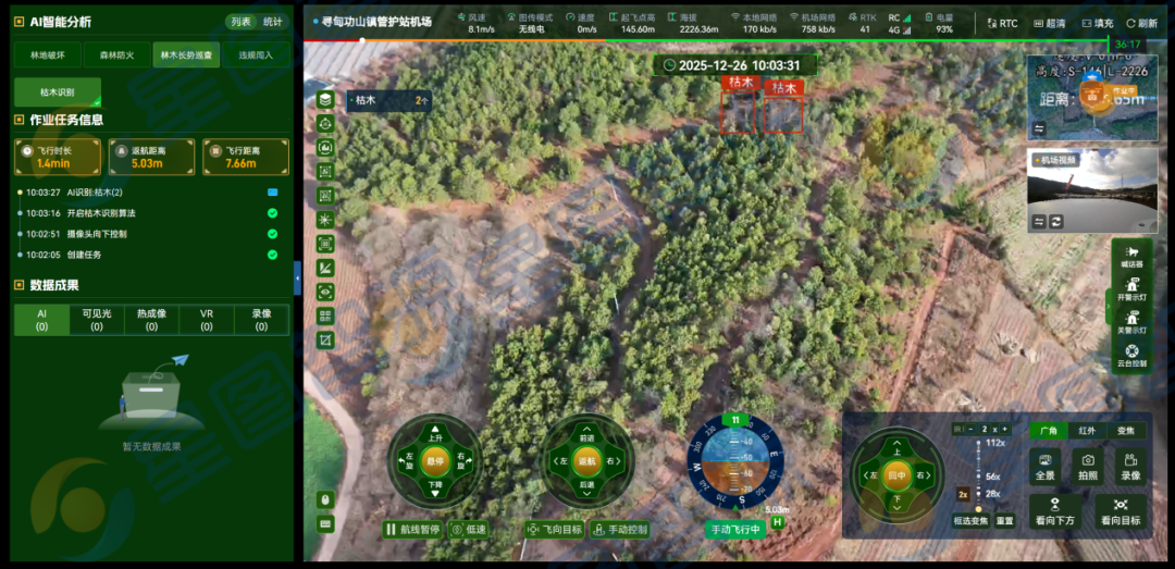 以低空智航平台为核心的SaaS解决方案,正通过“低空精准监测”与“智能数据分析”,构建“云端指挥-无人机巡查-AI预警-地面处置”全流程闭环,为林草“巡查监测、灾害预警、应急处置、资源管理”全业务流程注入新质效能,实现立体感知、精准识别、快速响应、科学管控,让林草管护每一环都“看得全、辨得准、响应快、管得好”。