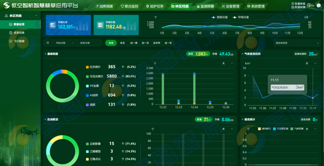 平台突破传统人工巡查的时空局限,依托多型号无人机、自动机场与多元传感器集群,构建起高机动、高频次、高精度的立体化监测网络。通过可见光、多光谱、热红外与激光雷达等设备的协同作业,不仅能实现大范围资源普查,更能精准识别早期火情、病虫害特征、非法活动迹象等微小目标,将灾害风险发现能力从“事后响应”提升至“事前预警”。
